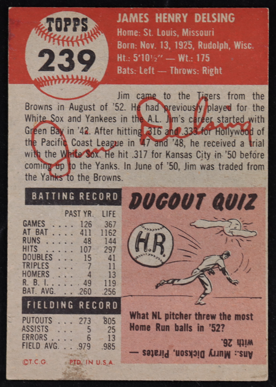 Jim Delsing 1953 Topps #239