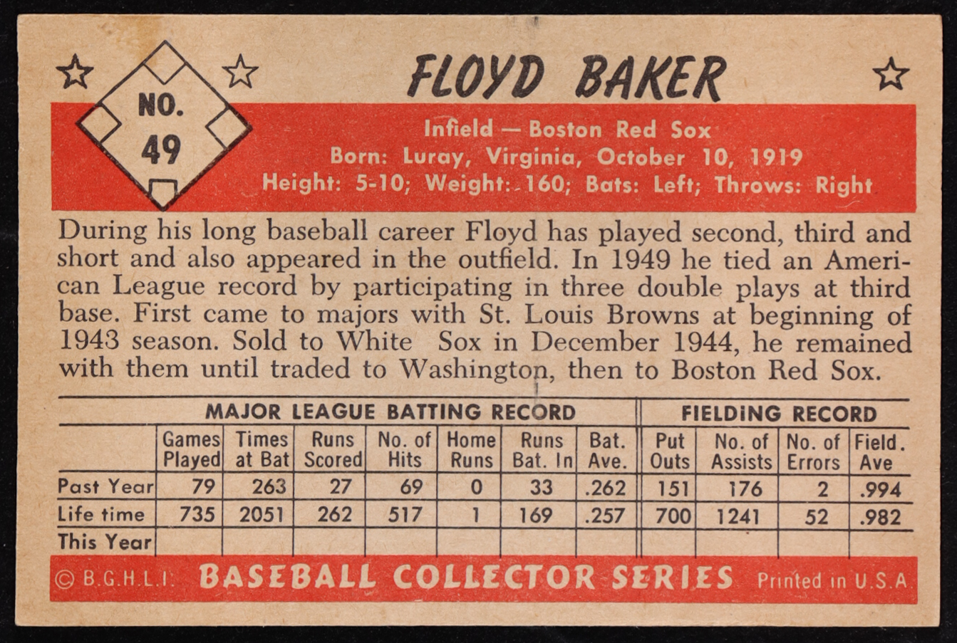 Floyd Baker 1953 Bowman Black and White #49