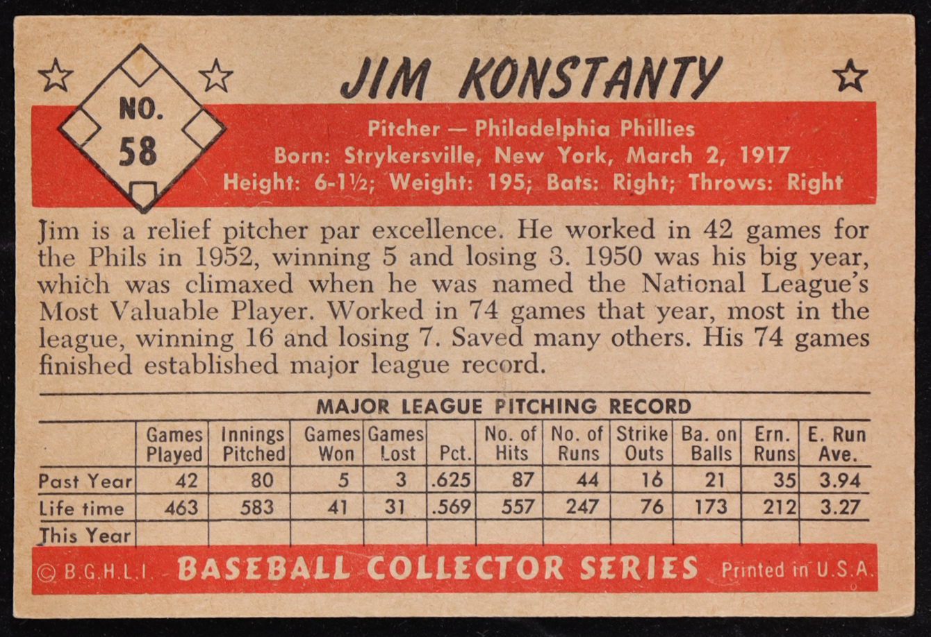 Jim Konstanty 1953 Bowman Black and White #58