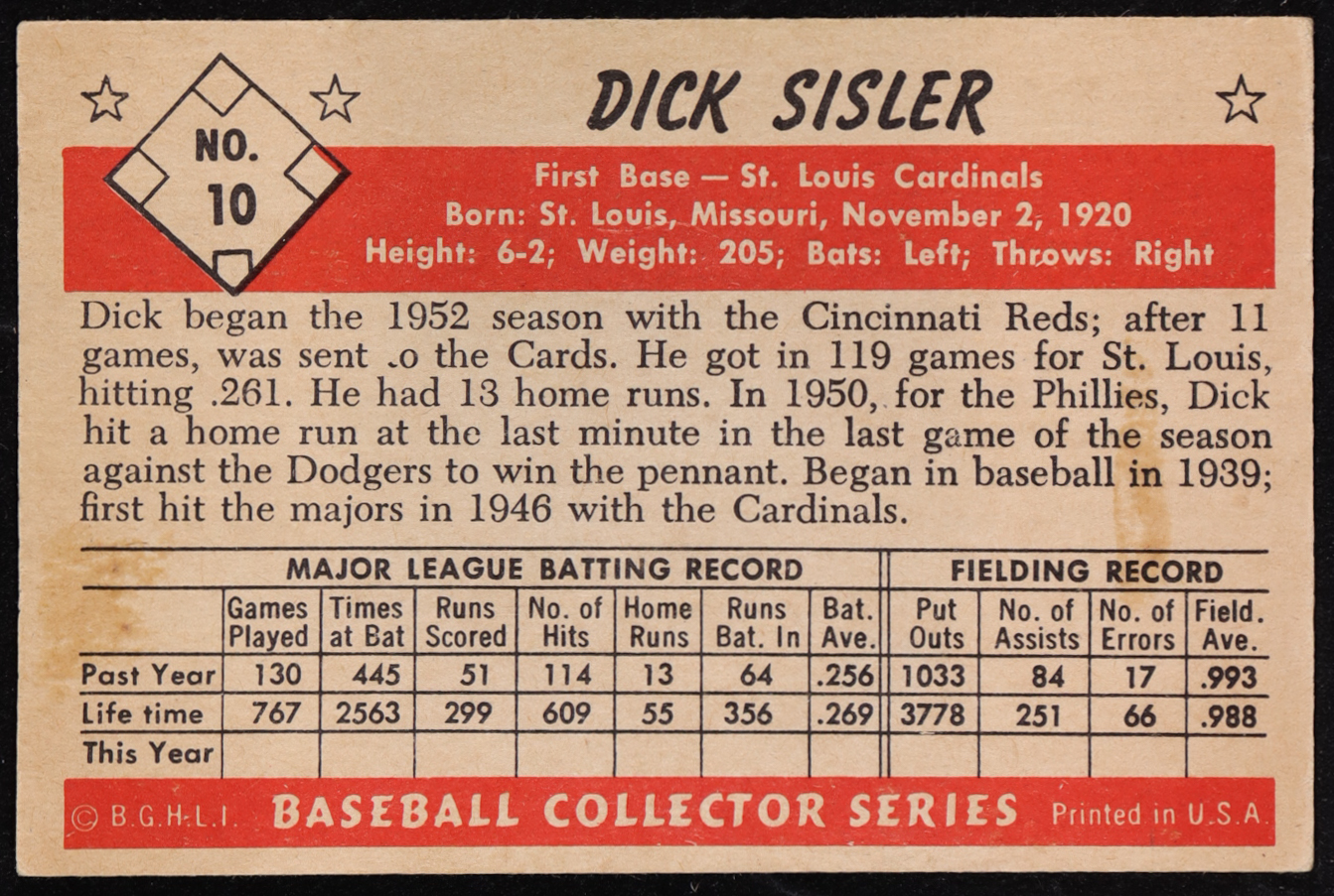 Dick Sisler 1953 Bowman Black and White #10
