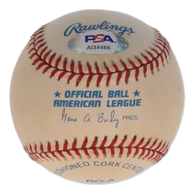 Rawlings Official American League Baseball has been hand-signed and inscribed by Don Larsen (D. 2020, Baltimore Orioles, HOF). Please note, ball has been stained and naturally toned.