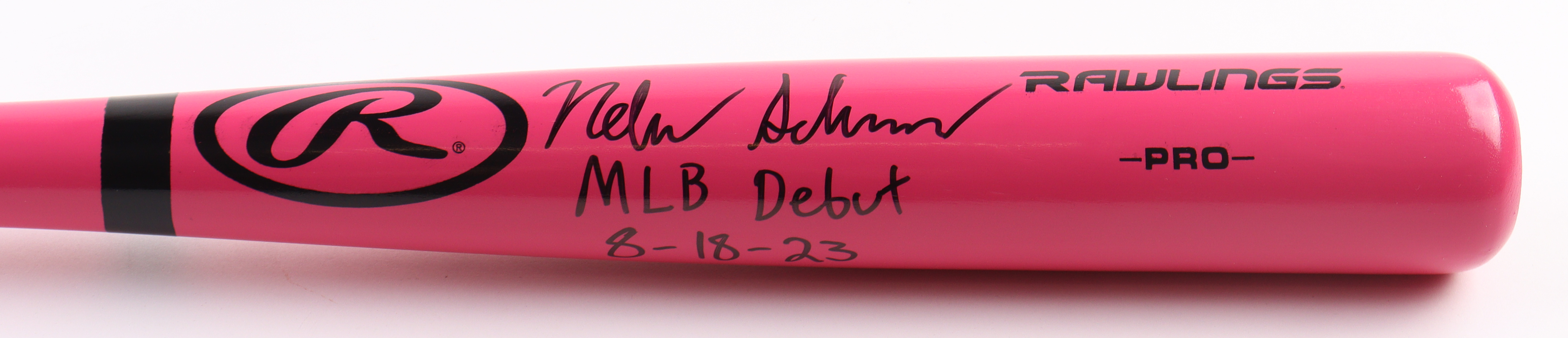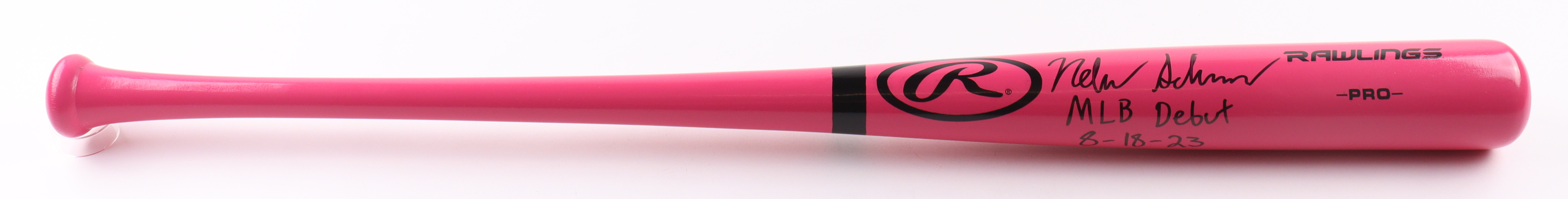 Nolan Schanuel Signed Rawlings Pro Baseball Bat Inscribed "MLB Debut 8-18-23" (JSA)