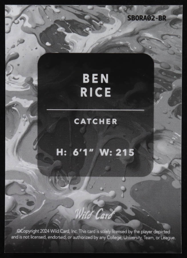 Ben Rice 2024 Wild Card Splat Orange Lava #SBORA02BR #5/7 RC