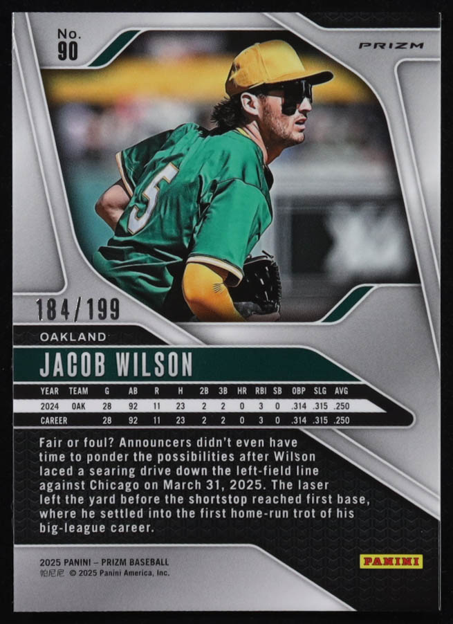 Jacob Wilson 2025 Panini Prizm Prizms Blue #90 #184/199