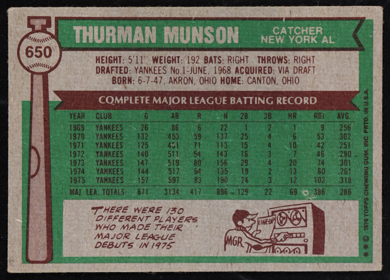 Thurman Munson 1976 Topps #650