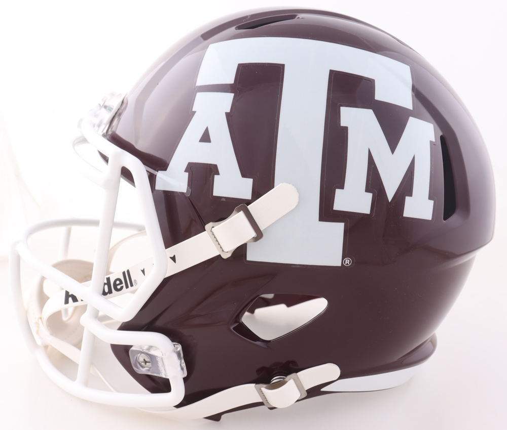 Riddell Texas A&M Aggies full-size replica Speed helmet has been hand-signed and inscribed by Johnny Manziel.
