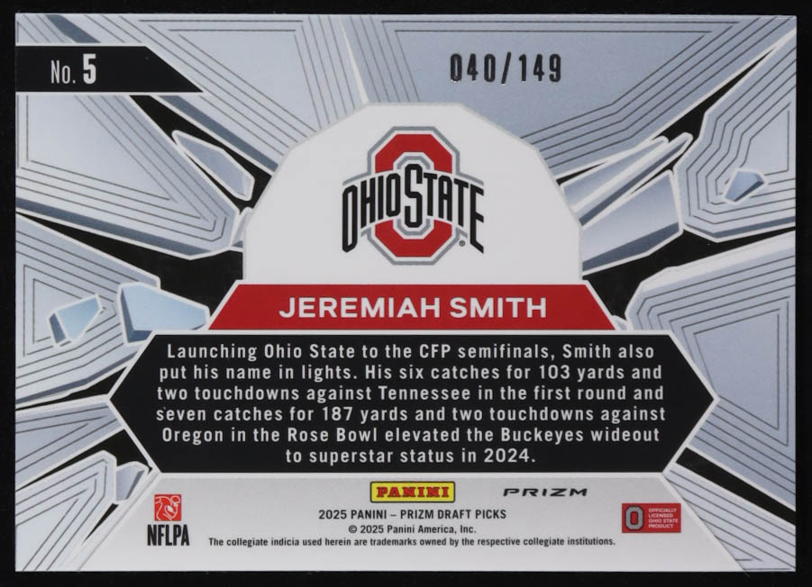 Jeremiah Smith 2025 Panini Prizm Draft Picks Prizm Break Blue Ice #5 RC