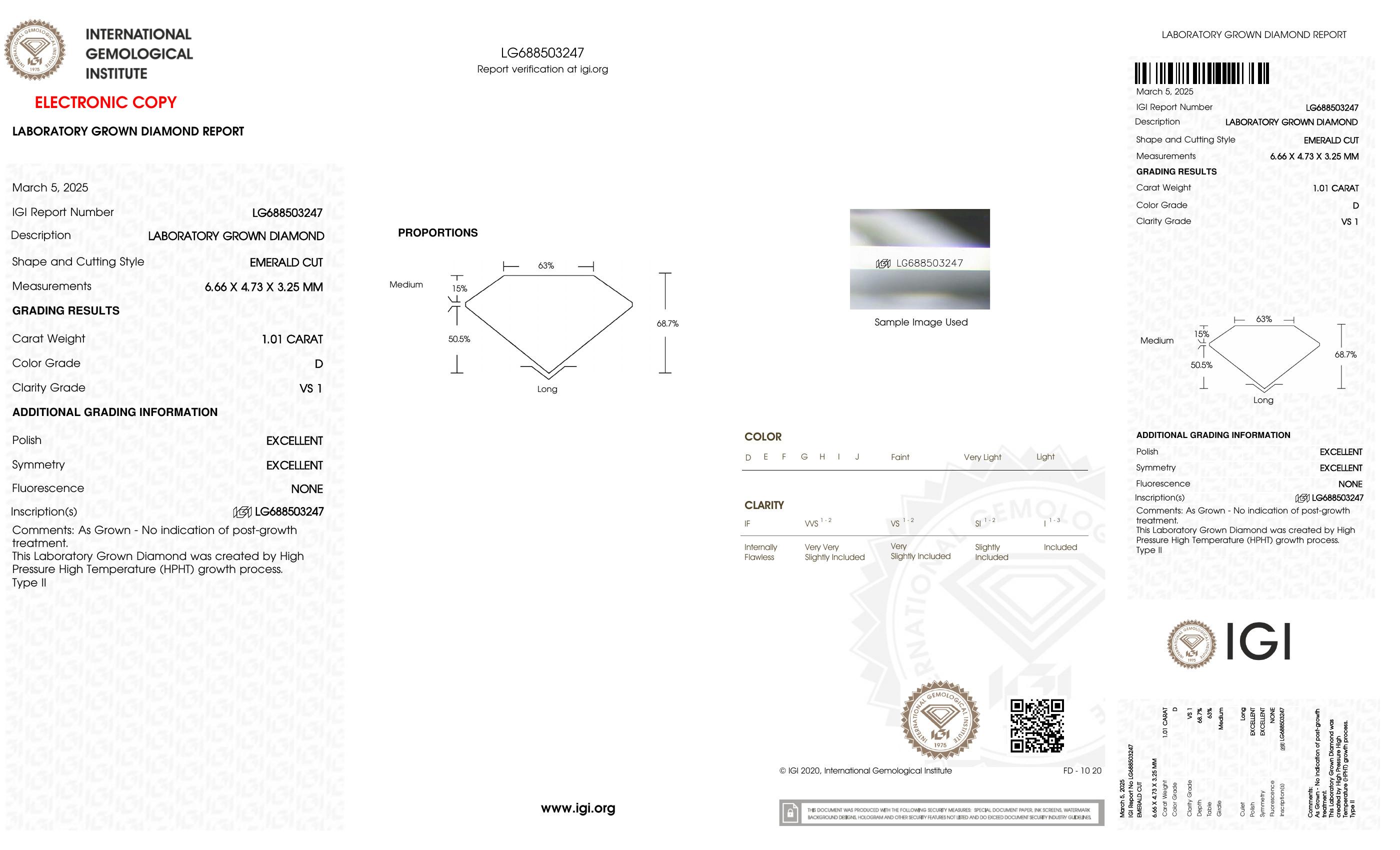 This piece includes paperwork from the International Gemological Institute (IGI).