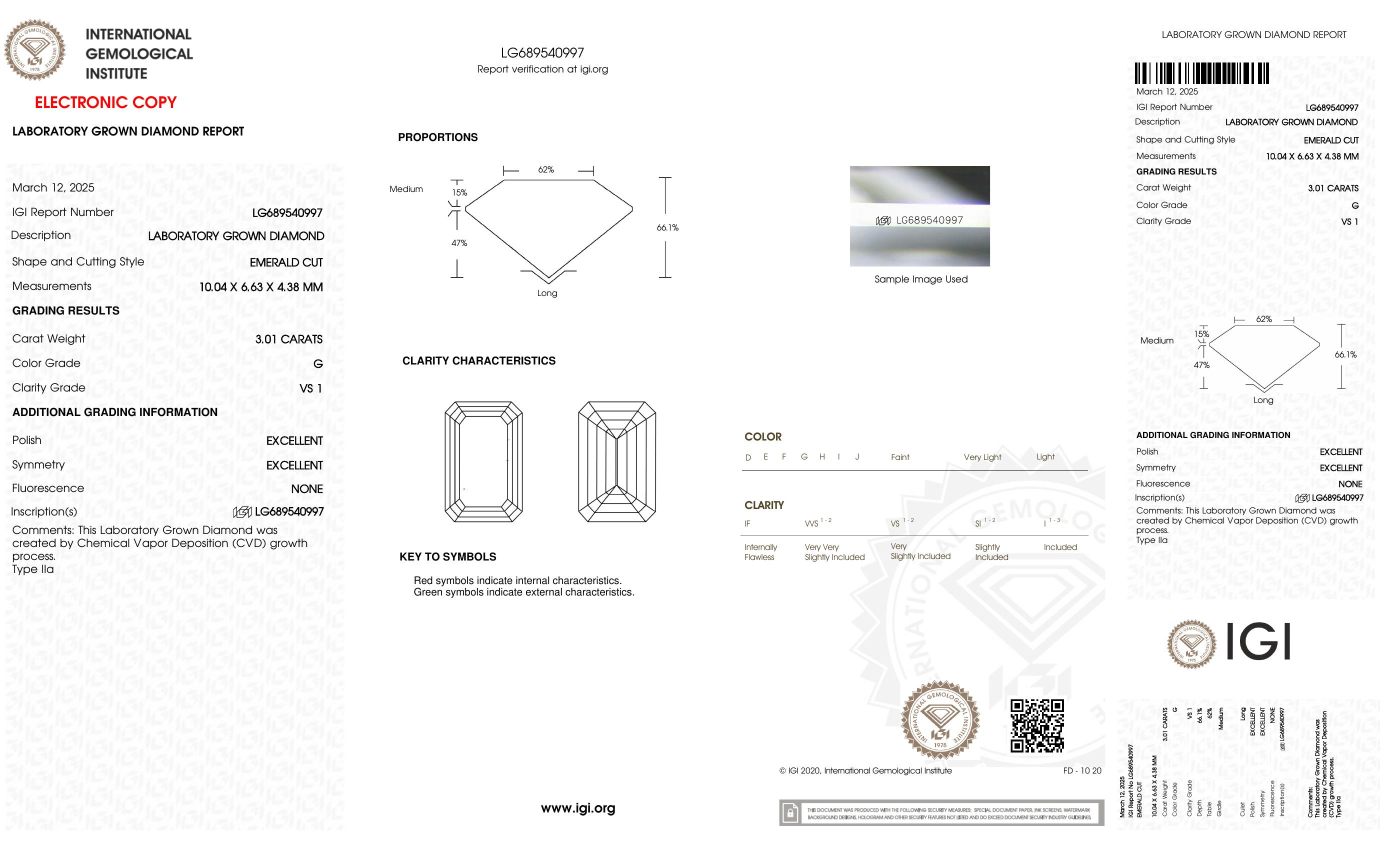 This piece includes paperwork from the International Gemological Institute (IGI) and Universal Gemological Laboratory (UGL).