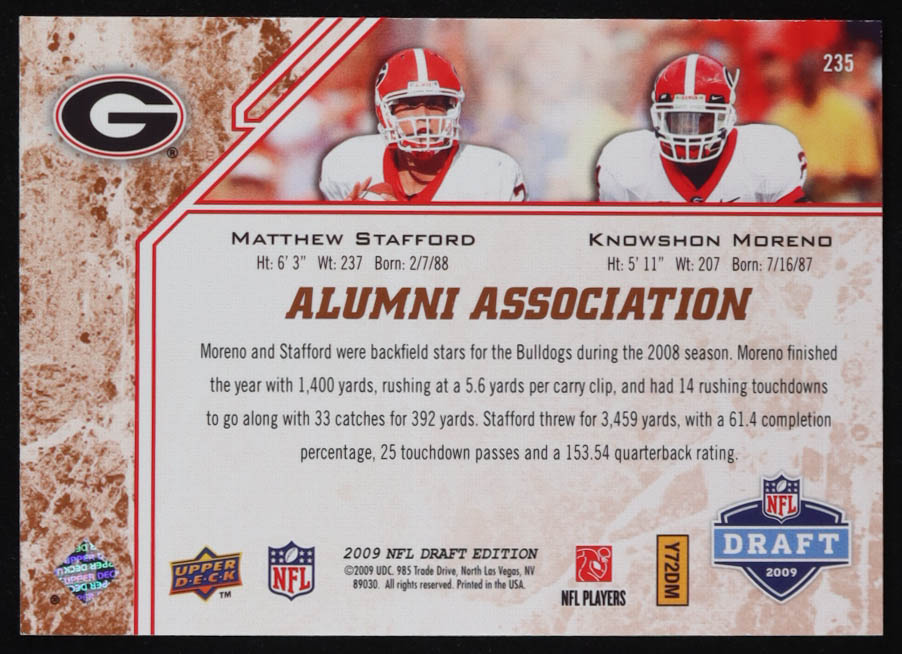Matthew Stafford / Knowshon Moreno 2009 Upper Deck Draft Edition Bronze 125 #235 Alumni Association #88/125