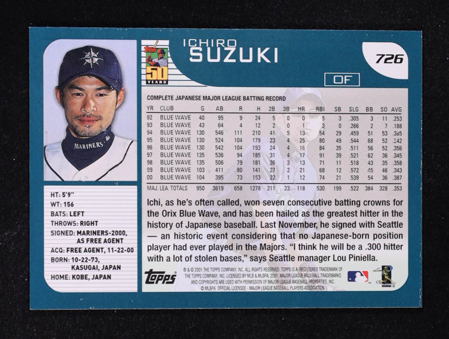 Ichiro Suzuki 2001 Topps #726 RC