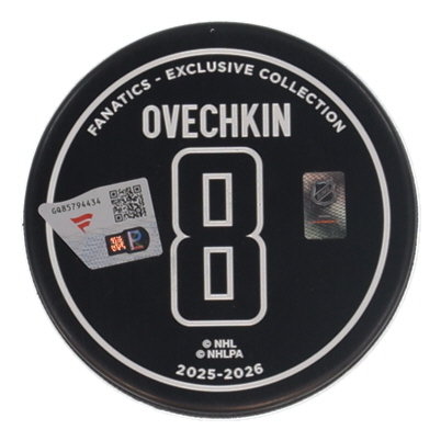Alexander Ovechkin Signed LE Capitals Logo All-Time Goals Leader Commemorative Hockey Puck (Fanatics)