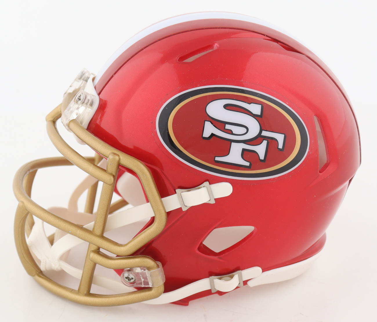Riddell San Francisco 49ers Flash Alternate Speed mini helmet. Hand-signed by Nick Bosa. Please note the signature is smudged.