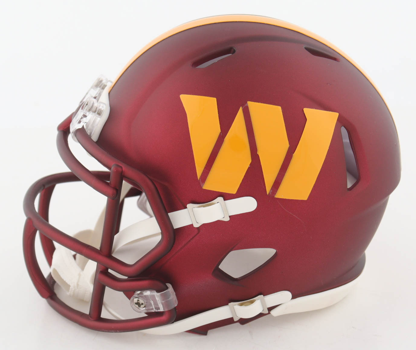 Riddell Washington Commanders speed mini helmet. Hand-signed by Jahan Dotson.