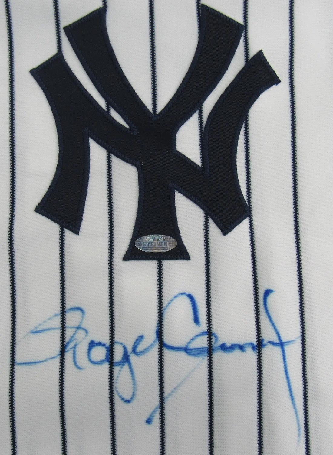 Russell jersey with everything sewn on, size XL. Hand-signed by Roger Clemens (New York Yankees).