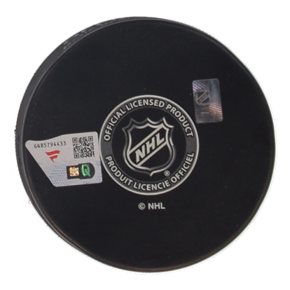 Minnesota Wild Logo Hockey Puck. Hand-signed by Quinn Hughes. Please note, the front of the puck is scuffed.