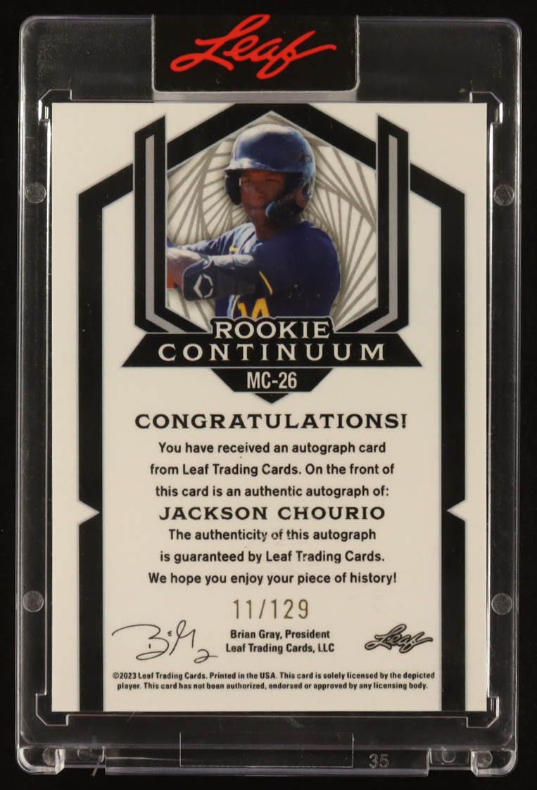 Jackson Chourio 2023 Leaf Metal Rookie Continuum Autographs Gold Prismatic #MC26 #11/129 RC