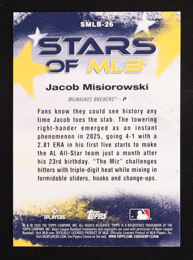 Jacob Misiorowski 2026 Topps Stars of MLB #SMLB26 RC