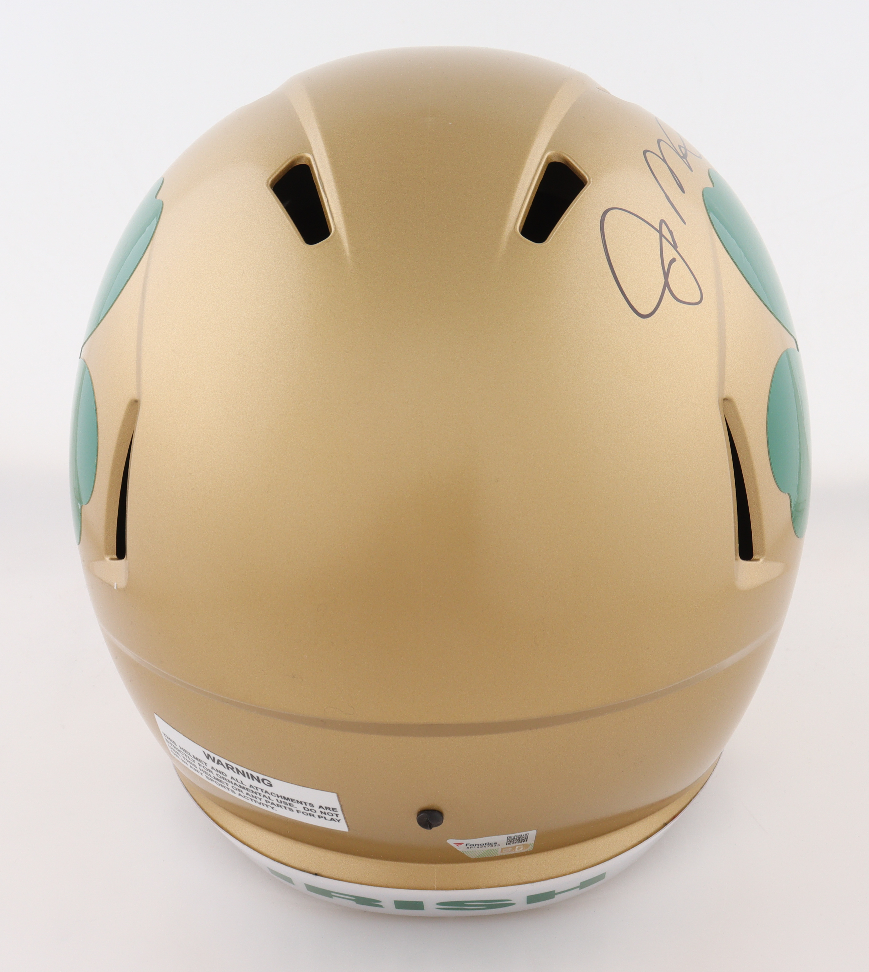 Riddell Notre Dame Fighting Irish full-size replica Speed helmet. Hand-signed by Joe Montana (HOF).