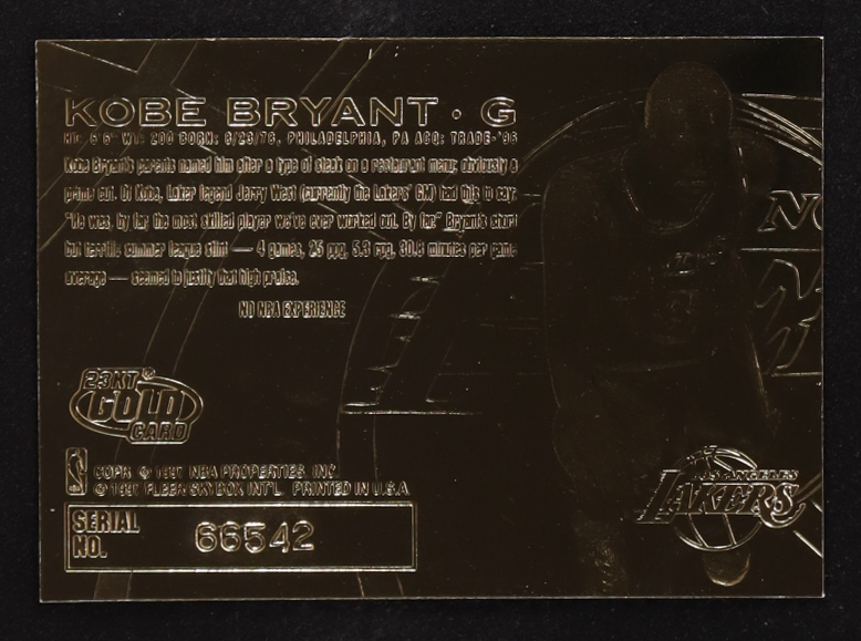 Kobe Bryant 1996-97 Fleer 23KT Gold Card Rookie 23KT Gold Card RC