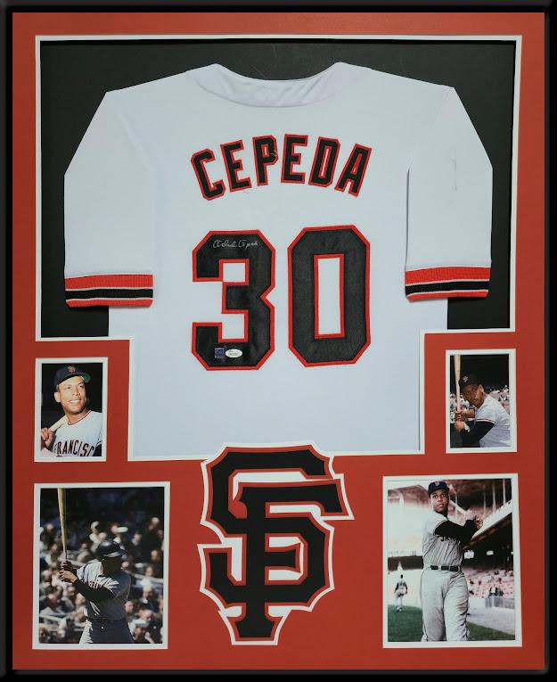 Custom frame measures 34" x 42" in size and features a jersey that has been hand-signed by Orlando Cepeda (D. 2024, HOF).