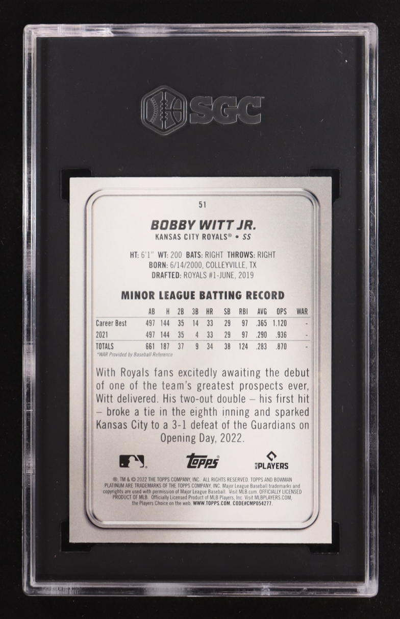 Bobby Witt Jr. 2022 Bowman Platinum #51 RC (SGC 10)