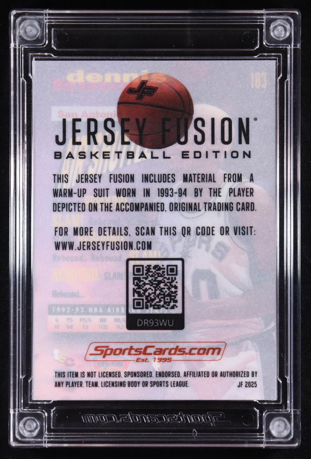 Dennis Rodman 2025 Jersey Fusion Game Used Swatch #DR93WU #24/50