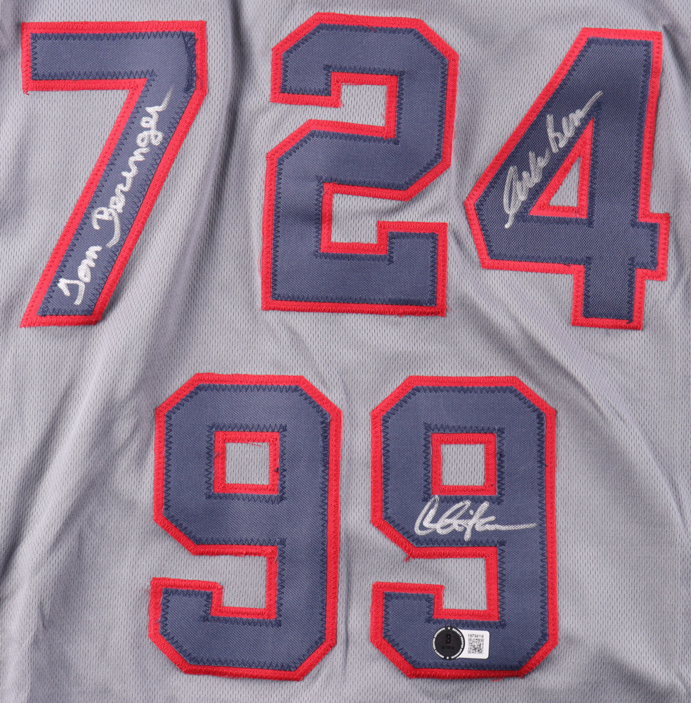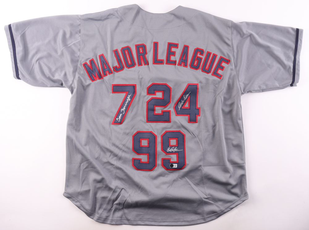 Custom jersey with everything sewn on, size XL. Hand-signed by Charlie Sheen (Ricky "Wild Thing" Vaughn), Tom Berenger (Jake Taylor), and Corbin Bernsen (Roger Dorn).