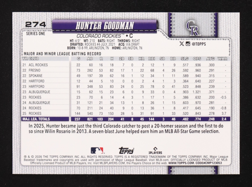 Please see photos for more details regarding the condition of the card (Colorado Rockies).