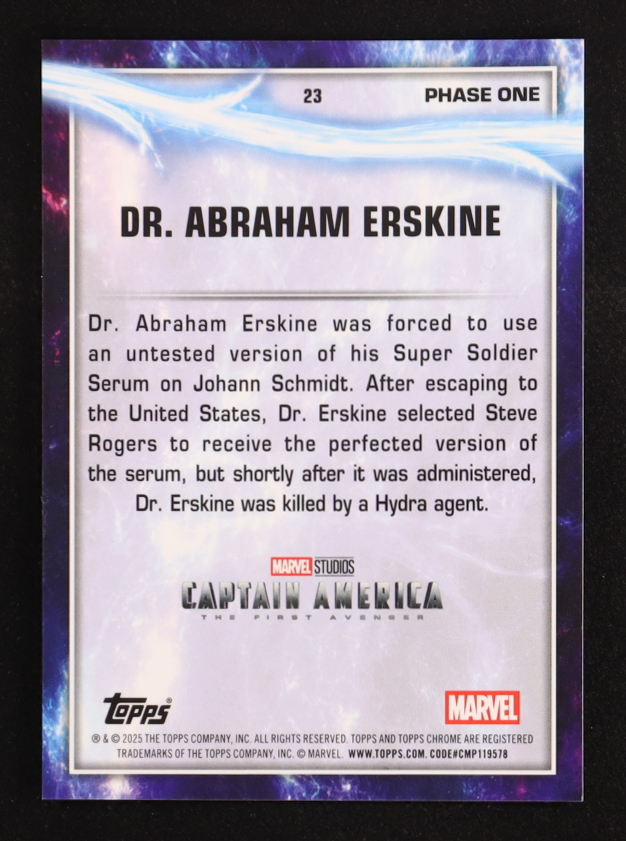 Dr. Abraham Erskine 2025 Topps Chrome Marvel Studios Gold Wave Refractors #23 #3/50