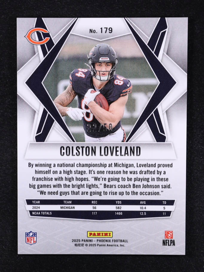 Colston Loveland 2025 Panini Phoenix Teal Mojo #179 #22/50 RC