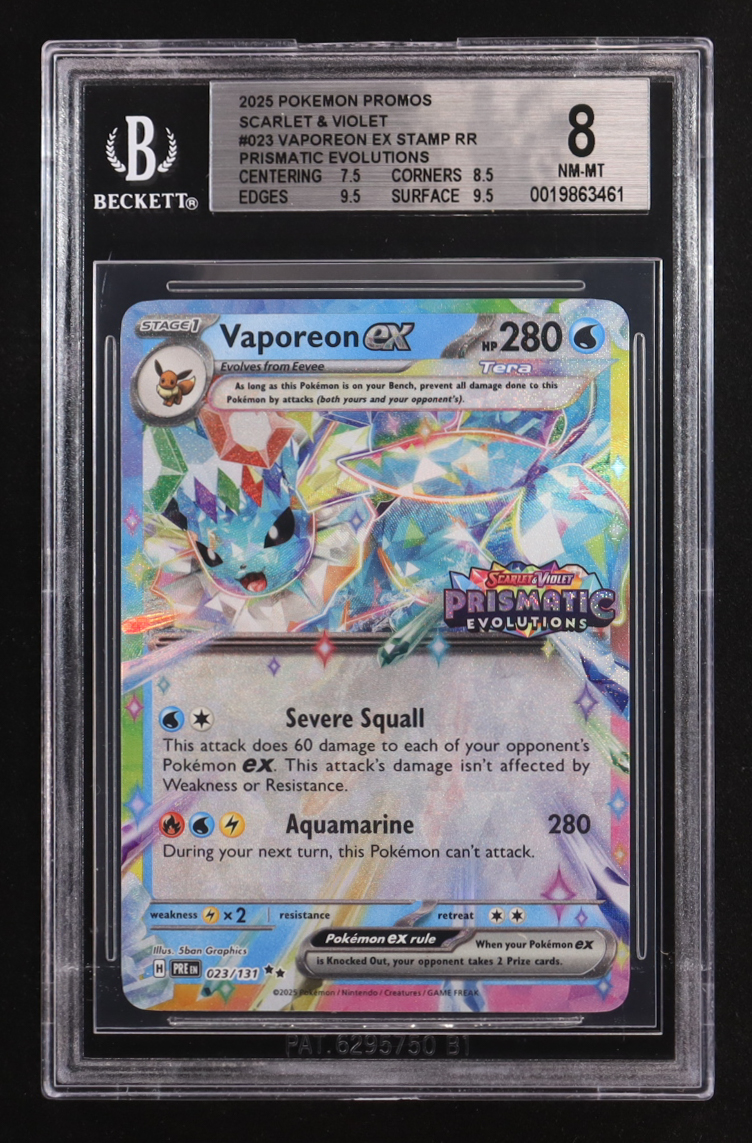 Vaporeon ex 2025 Pokemon TCG Scarlet & Violet Prismatic Evolutions Promos STAMP #023 (BGS 8)