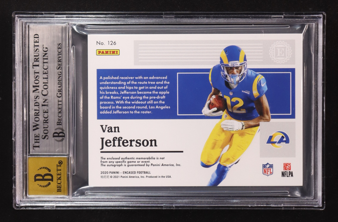 Van Jefferson 2020 Panini Encased Rookie Cap Patch Autographs #126 RC #17/50 (BGS 8 | Autograph Graded BGS 10)