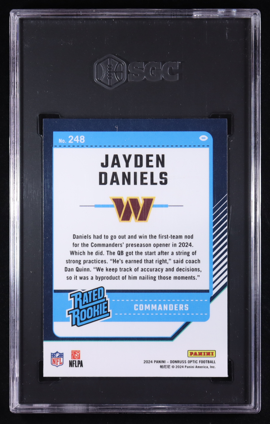 Jayden Daniels 2024 Donruss Optic #248 RR RC (SGC 8.5)