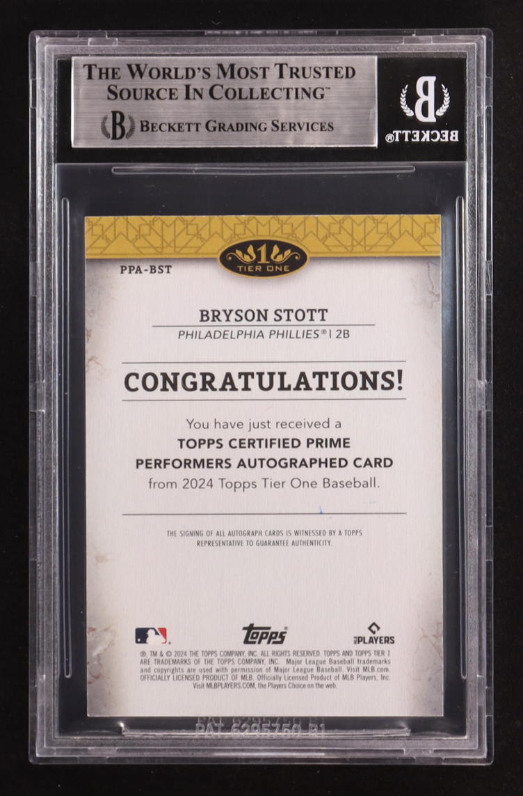 Bryson Stott 2024 Topps Tier One Prime Performers Autographs #PPA-BST #196/249 (BGS 9)