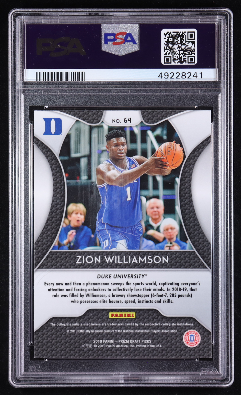 Zion Williamson 2019-20 Panini Prizm Draft Picks #64 RC (PSA 9)