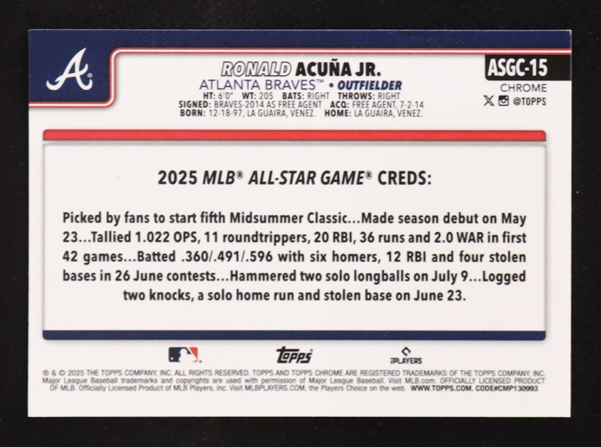 Ronald Acuna Jr. 2025 Topps Chrome Update '25 All-Star Game #ASGC15
