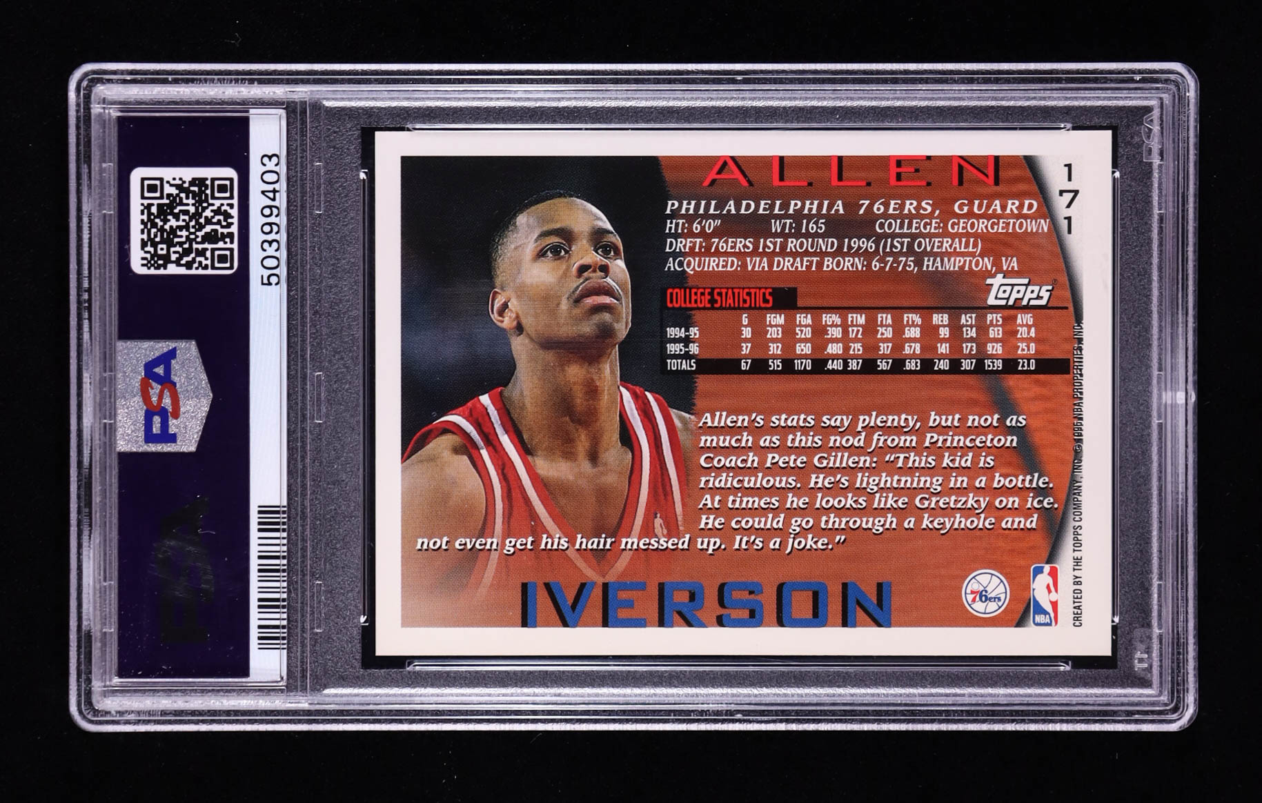 Allen Iverson 1996-97 Topps #171 RC (PSA 9)