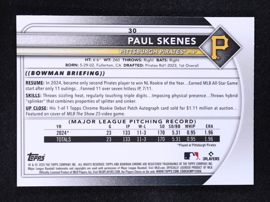 Paul Skenes 2025 Bowman Chrome Sapphire #30