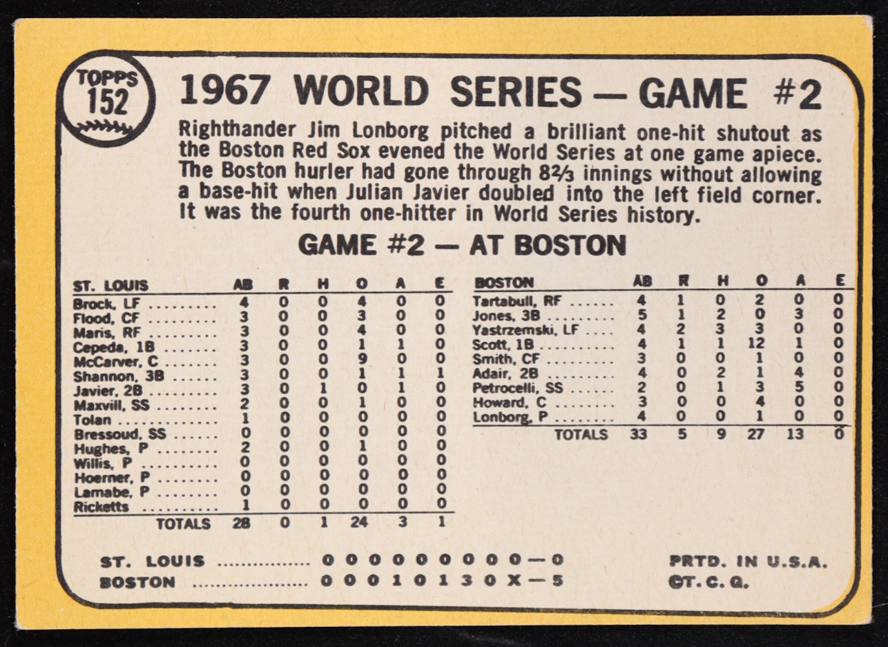 Carl Yastrzemski 1968 Topps #152 World Series Game 2