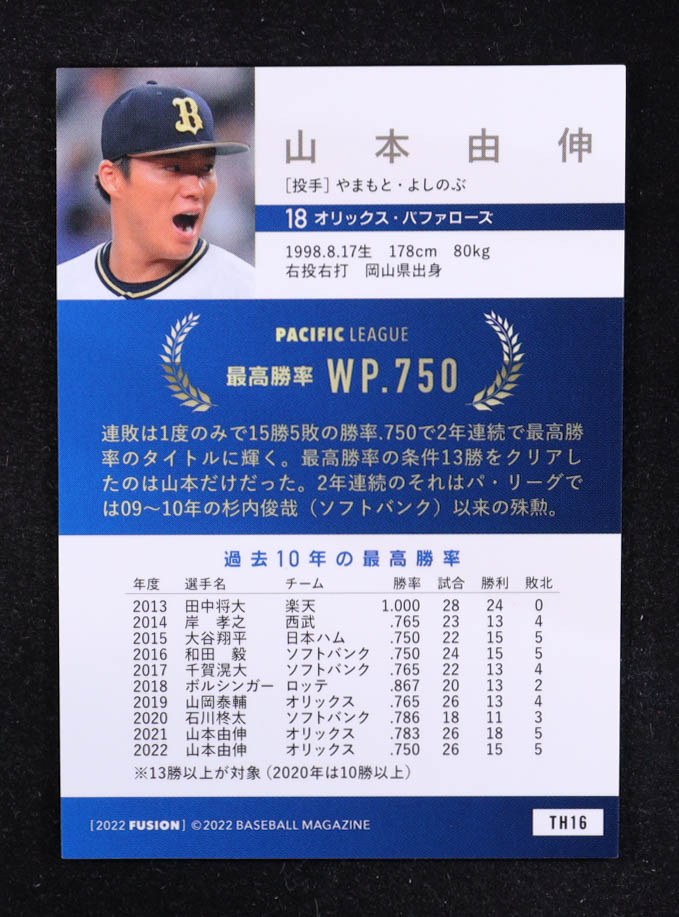 Yoshinobu Yamamoto 2022 BBM Fusion Title Holder #TH16