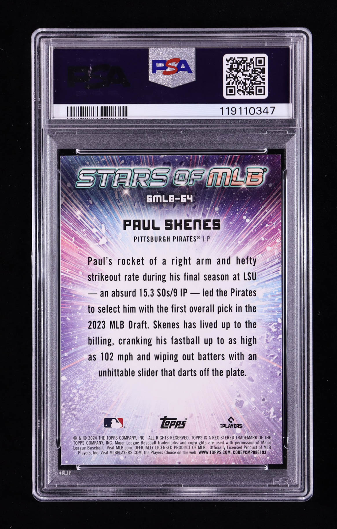 Paul Skenes 2024 Topps Stars of MLB #SMLB64 RC (PSA 10)