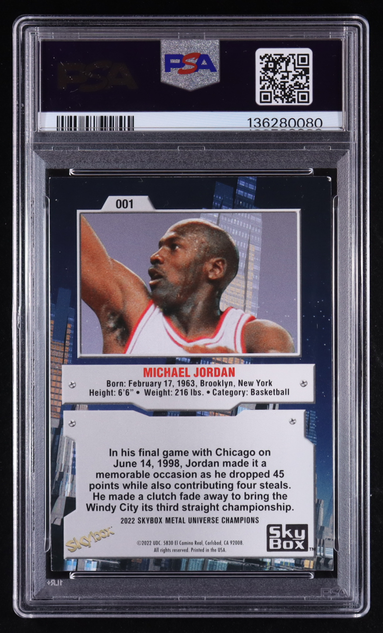 Michael Jordan 2022 Skybox Metal Universe Champions Aqua #001 (PSA 6)