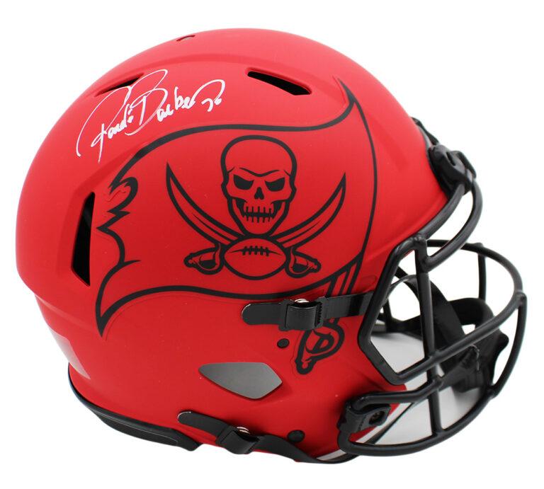 Riddell Tampa Bay Buccaneers full-size authentic on-field rave alternate speed helmet has been hand-signed by Ronde Barber (HOF).