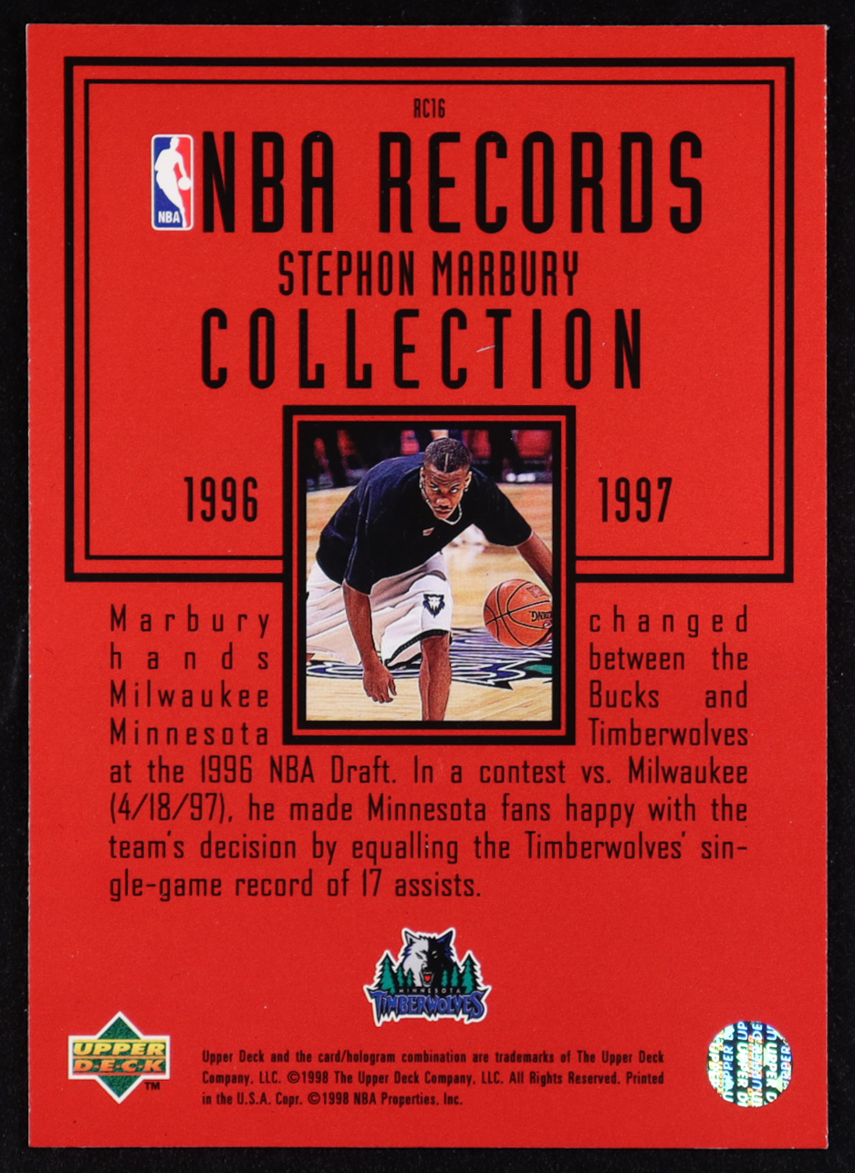 Stephon Marbury 1997-98 Upper Deck Records Collection #RC16
