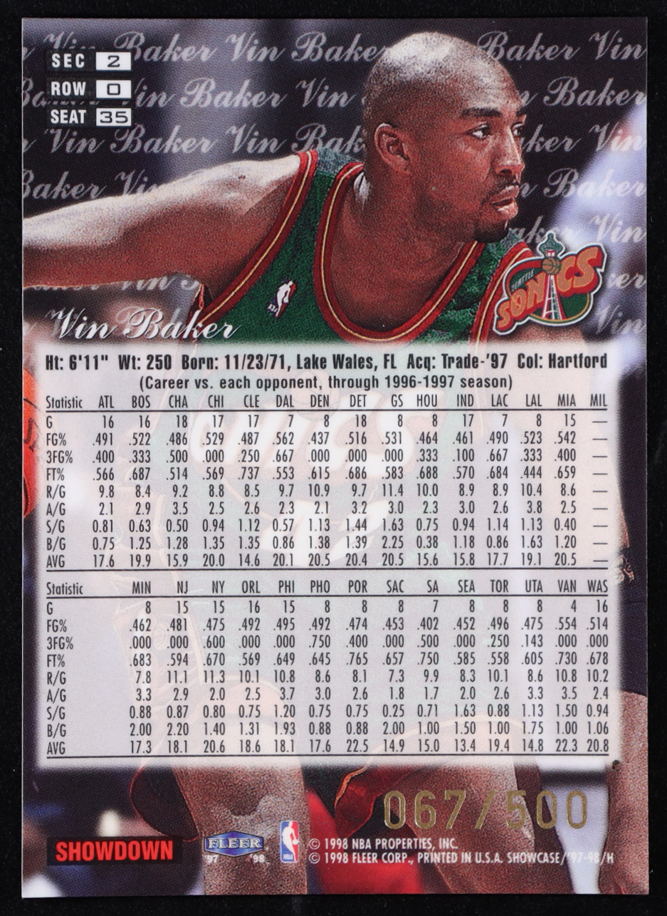 Vin Baker 1997-98 Flair Showcase Row 0 #35 #067/500