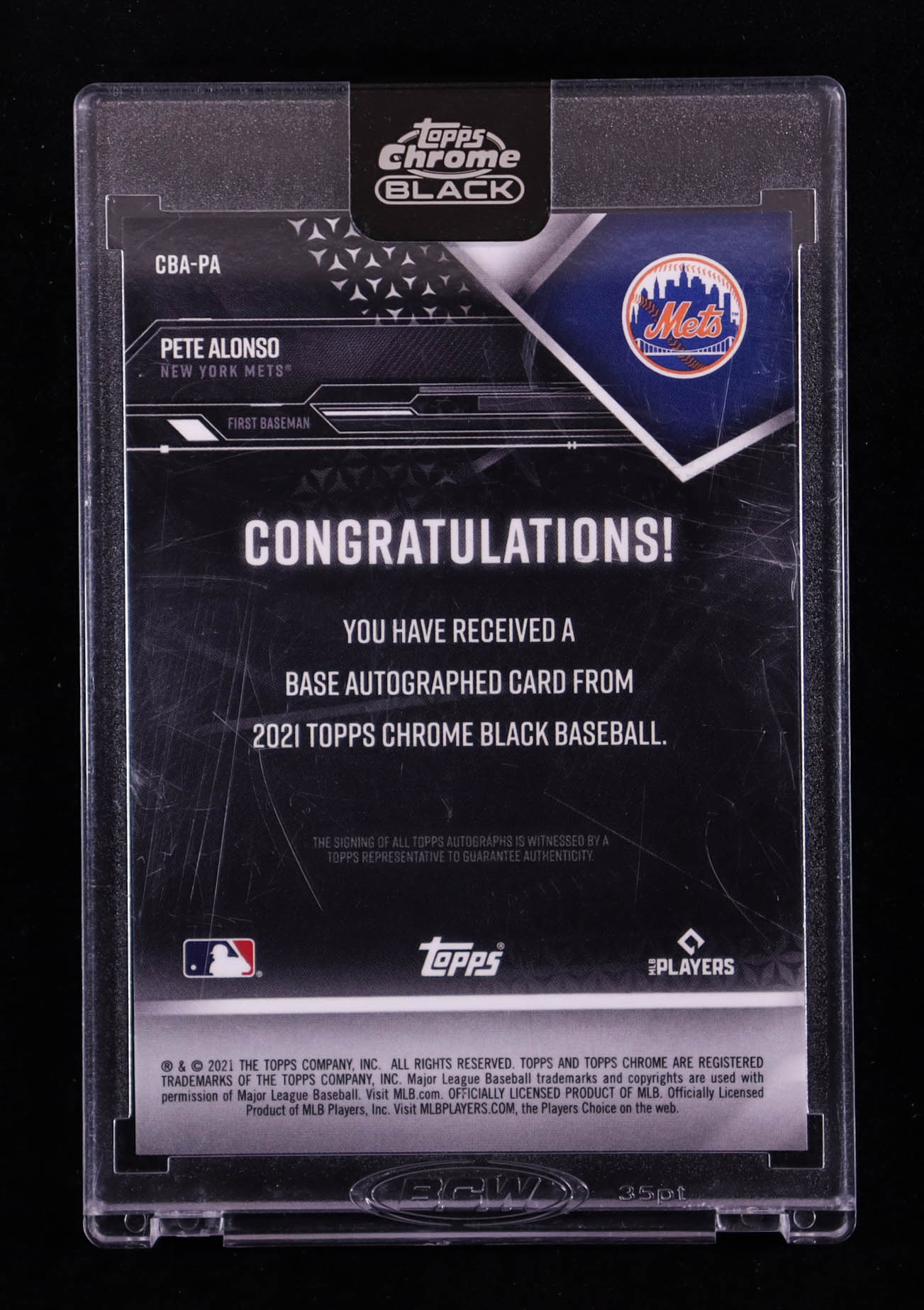 Pete Alonso 2021 Topps Chrome Black Autographs Green Refractors #CBAPA #24/99