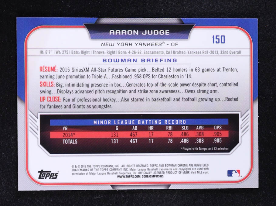 Aaron Judge 2015 Bowman Chrome Draft #150 RC
