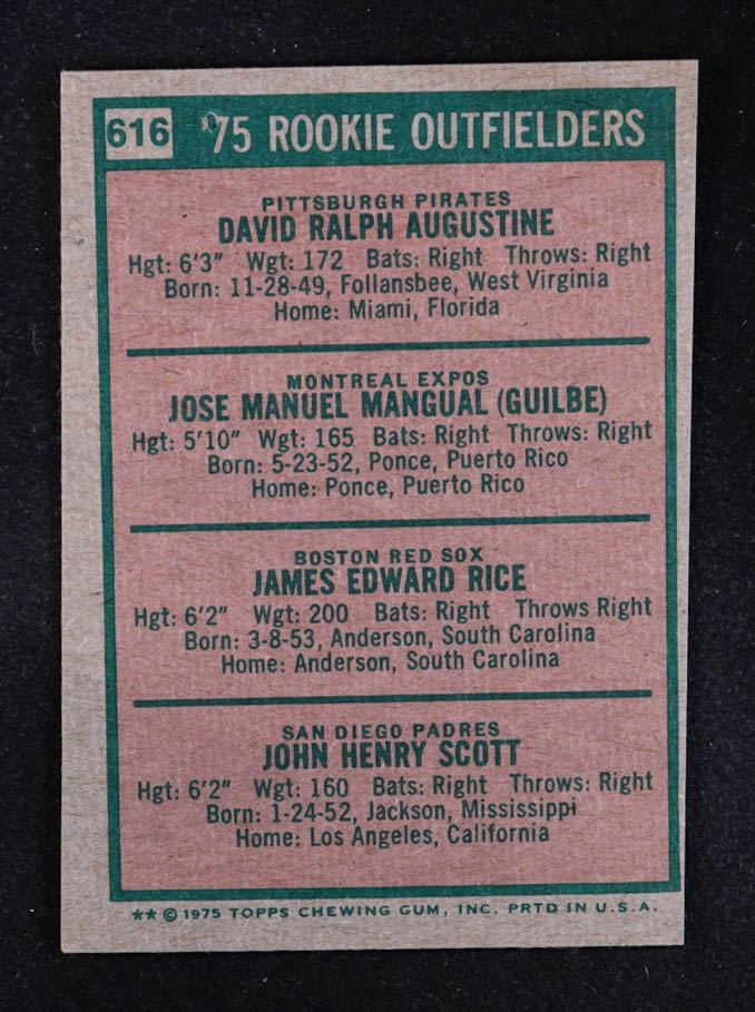 Dave Augustine / Pepe Mangual / Jim Rice / John Scott 1975 Topps #616 Rookie Outfielders RC