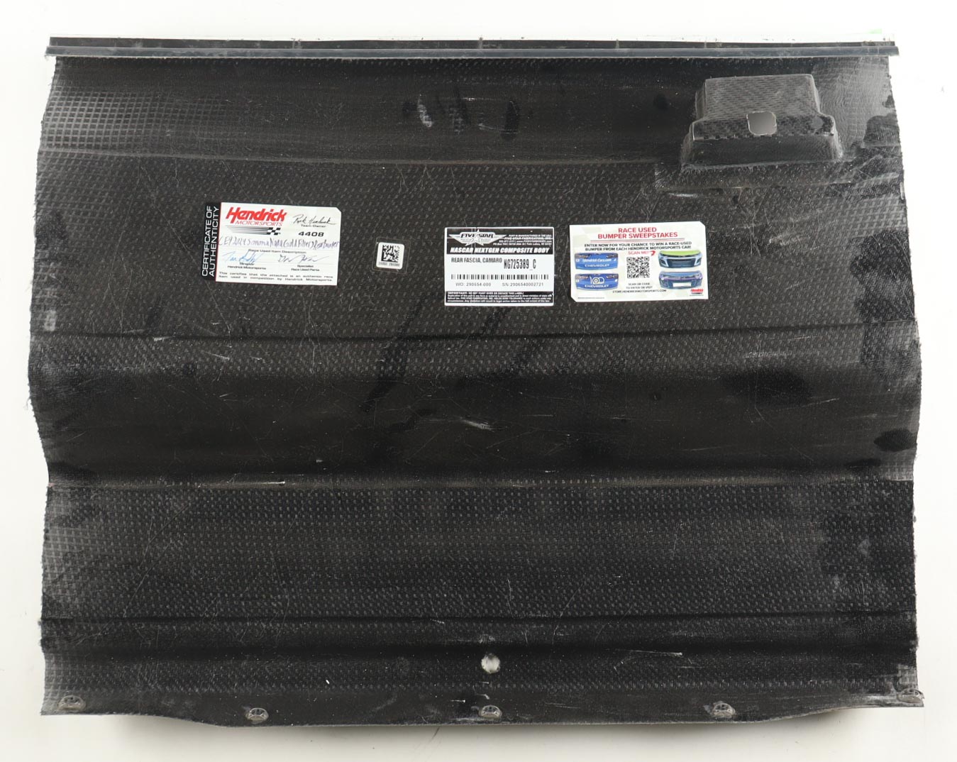 Race-Used Rear Bumper Partial Car Piece from Chase Elliott's #9 NAPA Gold Filters used during the 2024 Sonoma Raceway. Authenticated by the Director and Race Used Parts Specialist at Hendrick Motorsports.